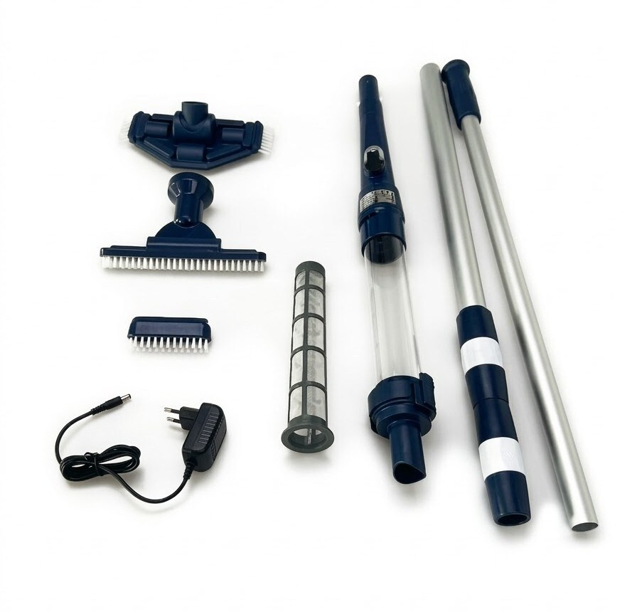 Bezdrátový vysavač disponuje 18W motorem se sací kapacitou 30 l/min a unikátní funkcí automatického spuštění při ponoření. Stačí ponořit zařízení do vody a vysavač se okamžitě aktivuje. Lithium-iontová baterie 4000 mAh zajišťuje až 60 minut nepřetržitého provozu, což odpovídá 20-30 čistícím cyklům.