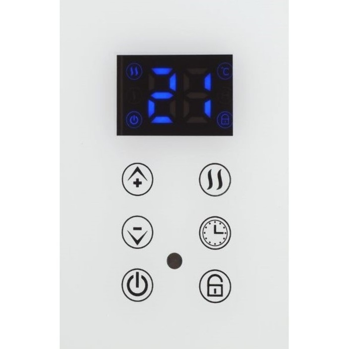 Konvektor je vybavený podsvíceným LED displejem, na kterém nastavíte požadovanou teplotu, kterou bude konvektor automaticky dodržovat.