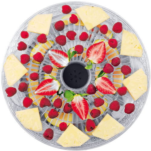 Pro zajištění perfektních výsledků je sušička vybavena integrovaným ventilátorem, který zajišťuje rovnoměrnou cirkulaci vzduchu ve všech patrech. K dispozici je 9 transparentních plat o průměru 32 cm se speciálně tvarovanými mřížkami, které podporují optimální proudění vzduchu. Díky této promyšlené konstrukci dosáhnete rovnoměrného proschnutí všech surovin, ať už sušíte houby, ovoce nebo připravujete RAW pochoutky. Transparentní provedení plat navíc umožňuje snadnou kontrolu procesu sušení.