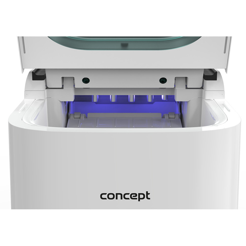 Výrobník ledu Concept VL1520 se díky kompaktním rozměrům snadno vejde na kuchyňskou linku, bar i do kanceláře. Přiložená lopatka umožňuje pohodlné a hygienické servírování ledu. S příkonem pouhých 150 W pracuje přístroj efektivně a úsporně, takže je ideální pro každodenní použití.