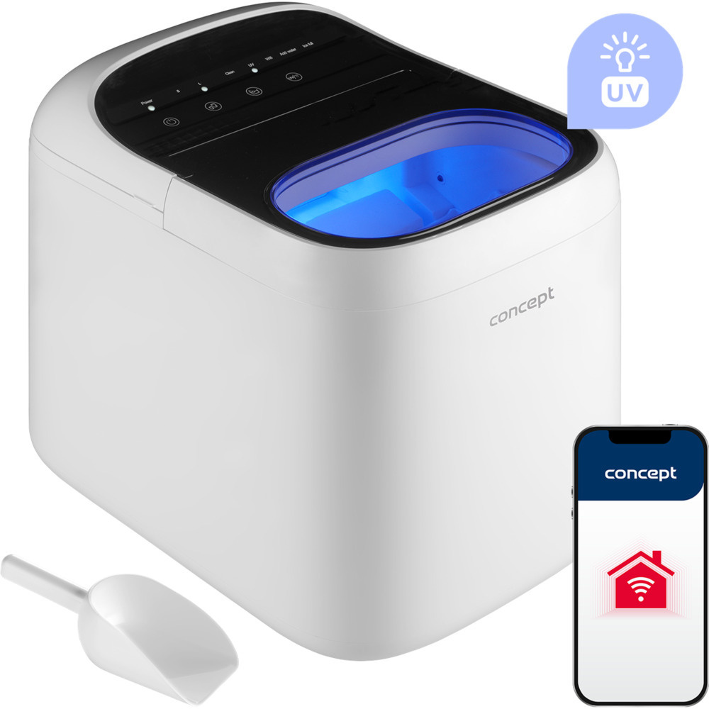 Přehledný dotykový ovládací panel zajišťuje snadné nastavení přímo na přístroji, ale skutečné pohodlí přináší mobilní aplikace Concept Home. Díky ní máte výrobník ledu plně pod kontrolou i na dálku. Ať už chystáte party, nebo jen chcete mít led připravený předem, aplikace vám usnadní každodenní používání a posune komfort na úroveň chytré domácnosti.