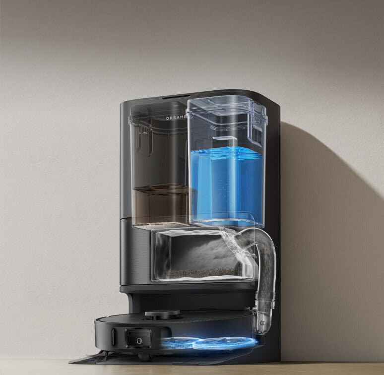 Prostřednictvím intuitivní mobilní aplikace Dreame máte plnou kontrolu nad čištěním s možností nastavení zakázaných zón, úpravy map, plánování úklidu a sledování průběhu čištění v reálném čase. Robot podporuje hlasové ovládání prostřednictvím hlasových asistentů, což umožňuje ovládat čištění bez nutnosti použití telefonu. Systém vám umožňuje personalizovat čištění podle vašich specifických požadavků pro každou místnost.