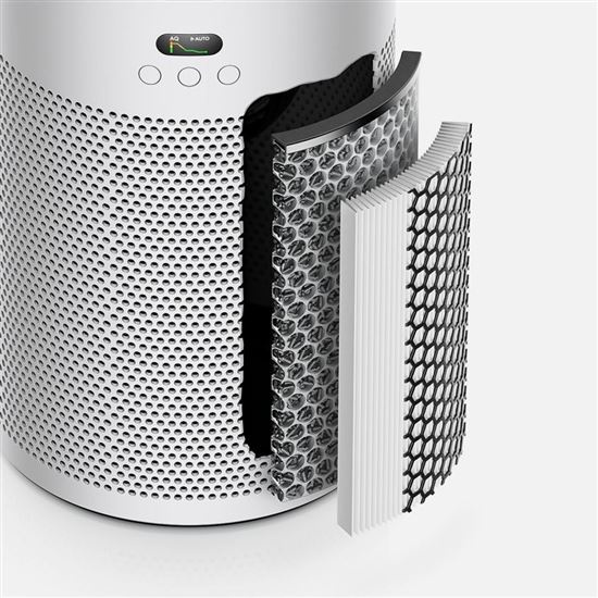 Co se dostane dovnitř, zůstane uvnitř. Čističky vzduchu Dyson jsou plně utěsněné, takže neuvolňují zachycené znečišťující látky zpět do prostoru. 360° elektrostatický HEPA filtr zachytí 99,97 % částic o velikosti již od 0,3 mikrometru, včetně alergenů, a zachovává vysoký výkon až po dobu 5 let. 360° filtr s aktivním uhlíkem odstraňuje pachy po domácích mazlíčcích, z vaření i škodlivé plyny, například NO₂. Díky pórovitému povrchu účinně pohlcuje nepříjemné pachy i znečišťující látky.