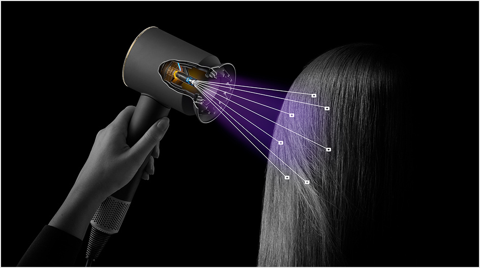 Špičkový vysoušeč vlasů využívá pokročilou síť senzorů Nural™, která zajišťuje automatickou regulaci proudění vzduchu a teploty. Díky tomu dosáhnete přirozeného lesku vlasů a současně ochráníte pokožku hlavy. Inteligentní Time of Flight snímač udržuje optimální teplotu 55°C u pokožky hlavy, zatímco Hallův senzor rozpoznává použité nástavce. Integrovaný akcelerometr detekuje položení přístroje a automaticky upravuje nastavení pro maximální bezpečnost.