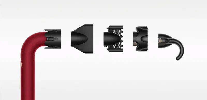 Vysoušeč nabízí pět magnetických nástavců s integrovanými RFID čipy, které automaticky optimalizují nastavení teploty a proudění vzduchu. K dispozici jsou tři úrovně rychlosti a čtyři teplotní režimy včetně studeného vzduchu pro fixaci účesu. Součástí výbavy je nástavec pro silné proudění vzduchu, profesionální stylingový nástavec, hřebenový nástavec pro kudrnaté vlasy, difuzér a inovativní Flyaway nástavec s Coanda efektem.