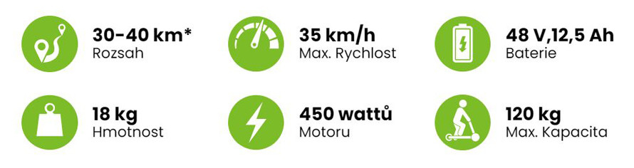 - Maximální dojezd 40 km