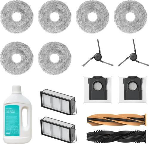 Tato doplňující sada obsahuje 6x mopovací textilii, 2x boční kartáček, 2x filtr, 2x prachový sáček, 2x hlavní kartáč a čistící roztok.