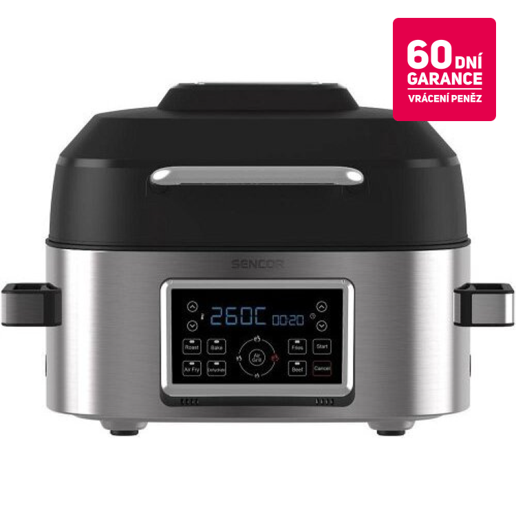 S horkovzdušnou fritézou SENCOR SBG 8900SS si můžete dopřát smažená křidélka, křupavé hranolky i šťavnatý steak v pohodlí domova. Jejich příprava bude navíc zdravější díky použití minima tuku. Teplotu lze nastavit v rozmezí od 40 do 265 °C podle typu pokrmu. Výkonný gril s příkonem 1660 W zajistí rychlé zahřátí a rovnoměrnou cirkulaci horkého vzduchu během celé doby přípravy.