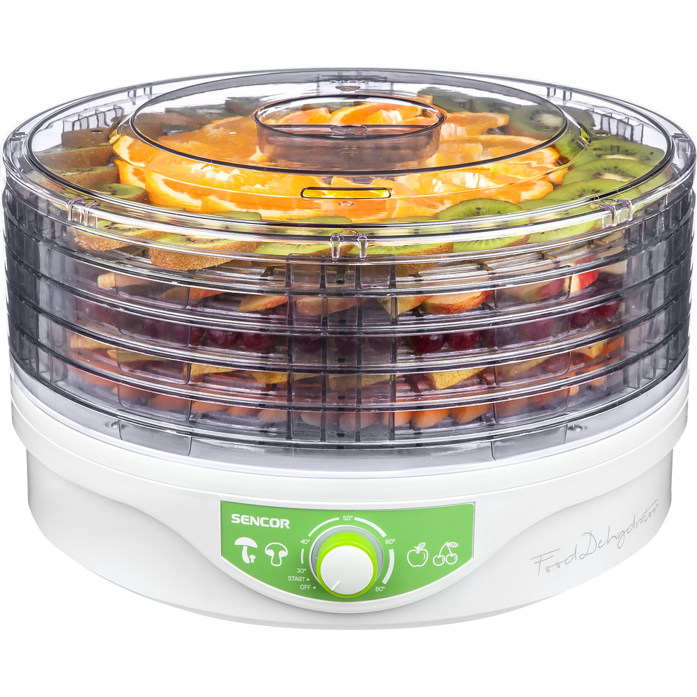 Model SENCOR SFD 2105WH nabízí pět prostorných plat s průměrem 33 cm pro efektivní domácí sušení. Praktická konstrukce umožňuje použití již od jednoho plata, což oceníte při zpracování menšího množství surovin. Kompaktní rozměry 330 x 235 x 330 mm zajišťují snadné skladování.