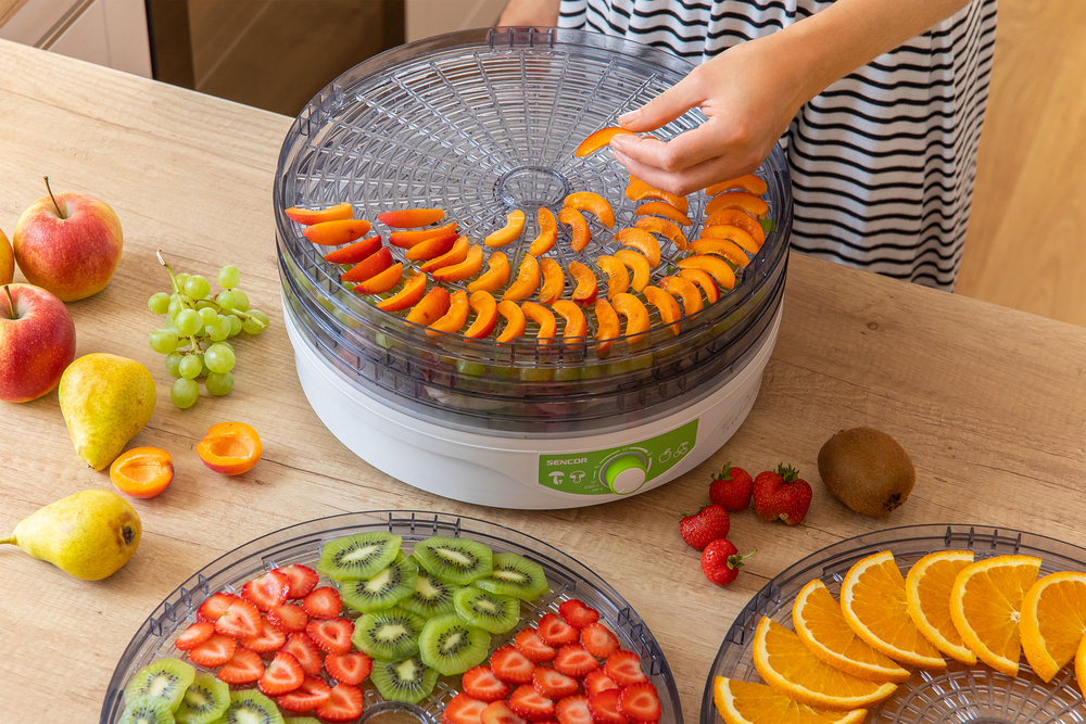 Sušička zvládne širokou škálu potravin od ovoce a zeleniny přes houby a bylinky až po masové speciality. Všechna plata jsou vyrobena z kvalitního tepelně odolného plastu, lze je mýt v myčce nádobí a jejich speciální konstrukce podporuje rovnoměrné proudění vzduchu pro optimální výsledky sušení.