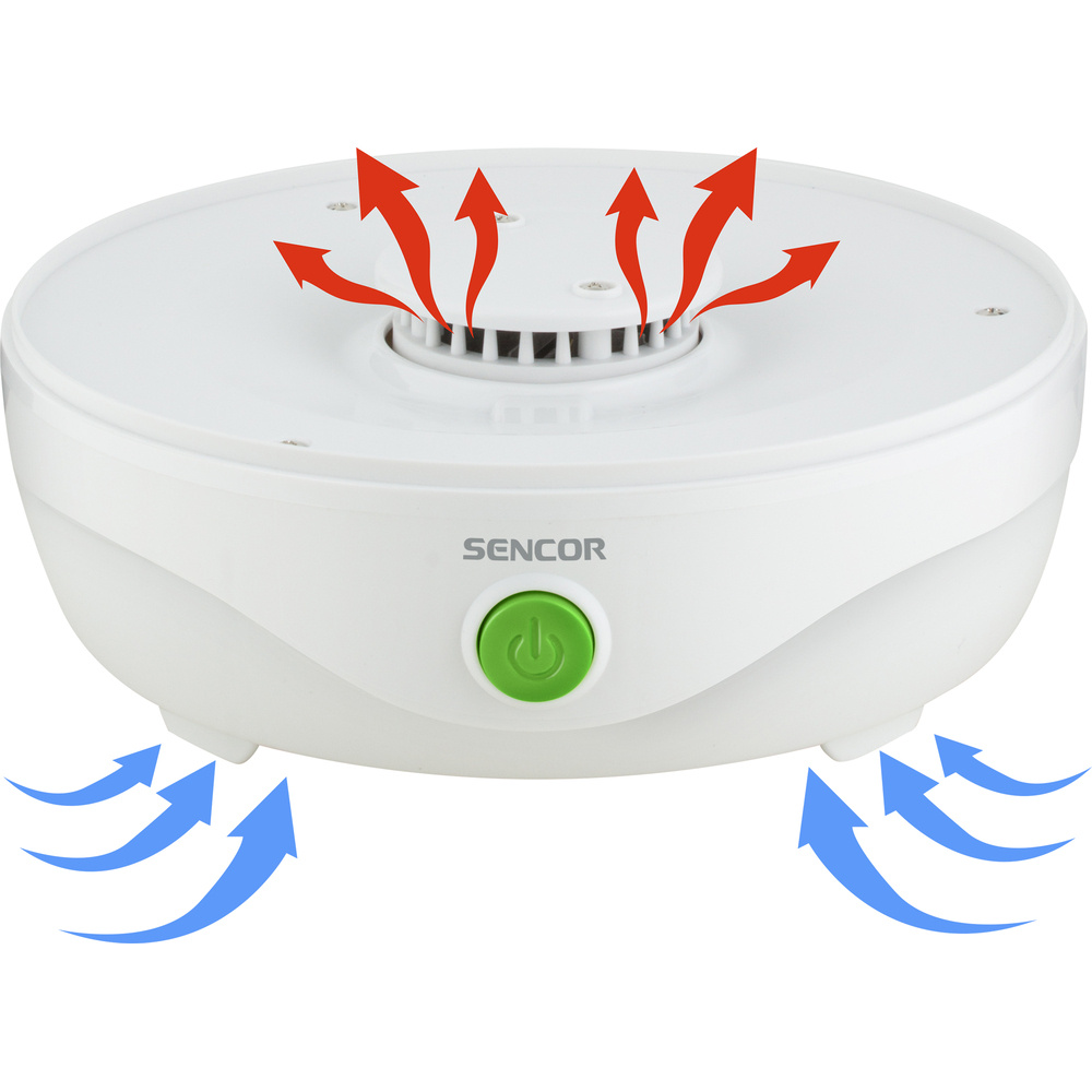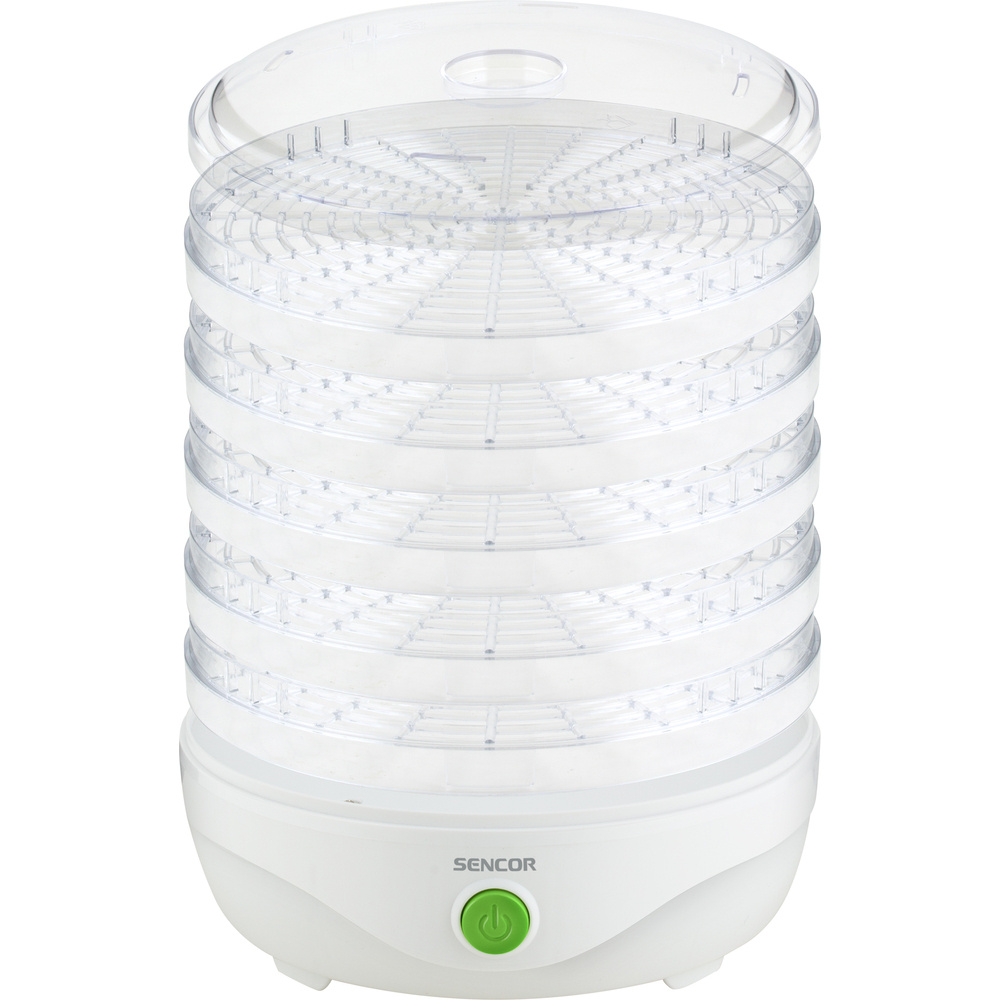 Model SENCOR SFD 750WH nabízí pět praktických plat s průměrem 23 cm a nastavitelnou výškou 2,5 cm. Speciální mřížková konstrukce plat optimalizuje proudění vzduchu a zabraňuje vzniku plísní. Zabudovaný ventilátor zajišťuje optimální cirkulaci horkého vzduchu směrem nahoru a do stran, což umožňuje rovnoměrné sušení všech ingrediencí.
