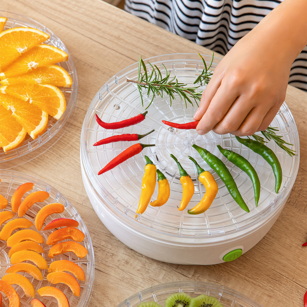 Sušička zvládne pestrou škálu potravin - od ovoce (křížaly, švestky, meruňky) přes zeleninu, houby a bylinky až po přípravu sušeného masa a ryb. Je vhodná i pro sušení dýňových semínek nebo přípravu vonných směsí z okvětních lístků. Průhledná konstrukce plat a víka dovoluje průběžnou kontrolu procesu sušení bez nutnosti manipulace.