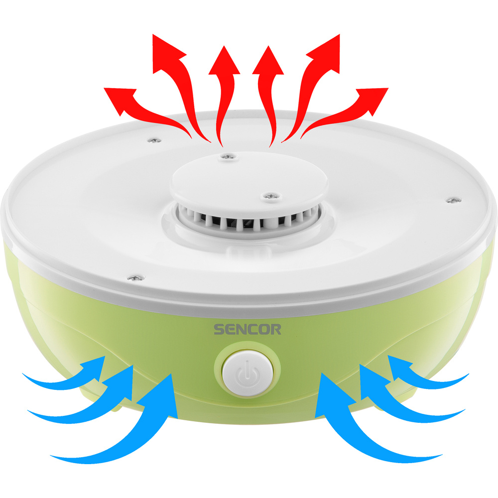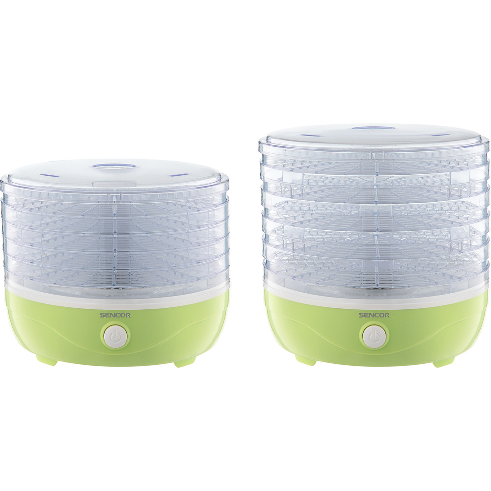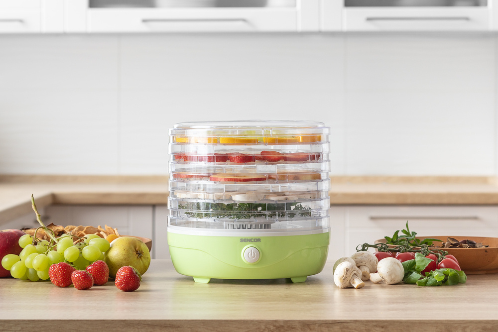 Model SENCOR SFD 757GG nabízí pět praktických plat s průměrem 23 cm a nastavitelnou výškou až 2,5 cm. Díky možnosti použití již od jednoho plata je sušička velmi flexibilní. Zabudovaný ventilátor zajišťuje optimální cirkulaci horkého vzduchu do všech pater sušičky, zatímco speciální konstrukce plat umožňuje efektivní proudění vzduchu a rovnoměrné sušení všech ingrediencí.