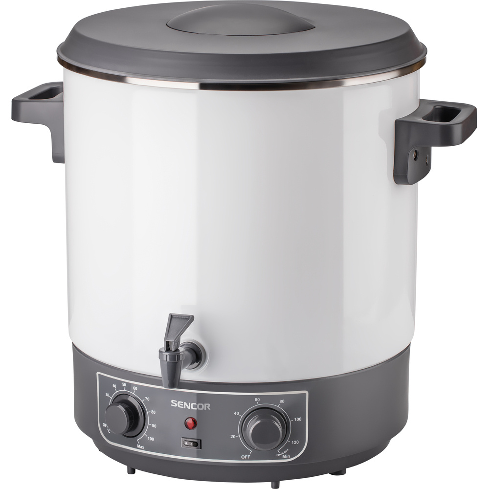 SPP 2100WH není limitován pouze na zavařování. Je vhodný také pro přípravu horkých nápojů, polévek a omáček. Praktický vestavěný výpustní kohout usnadňuje stáčení připravených nápojů, jako je svařené víno, čaj, punč nebo jiné horké nápoje. Pro bezpečnou manipulaci jsou rukojeti tepelně izolované, což eliminuje riziko popálení. Hrnec nabízí dva režimy zavařování - s nastavitelným časovým spínačem 20-120 minut nebo v režimu nepřetržitého chodu, který je ideální pro udržování stálé teploty pokrmů.