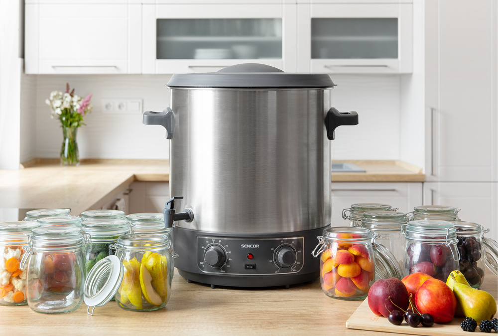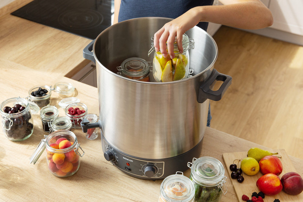 Automatický zavařovací hrnec SPP 2200SS vyniká svým objemným provedením s kapacitou 27 litrů a vysokým příkonem 1800 W, který zajišťuje rychlý a efektivní ohřev. Kvalitní nerezové provedení garantuje hygienickou přípravu a snadnou údržbu bez vlivu na chuť a vůni pokrmů. Do hrnce lze umístit až 14 zavařovacích sklenic o objemu 1 litru, přičemž menší sklenice lze prakticky stohovat pro maximální využití prostoru. Tento všestranný pomocník umožňuje perfektní zavařování a sterilizaci ovoce, zeleniny, marmelád, příkrmů i masa.