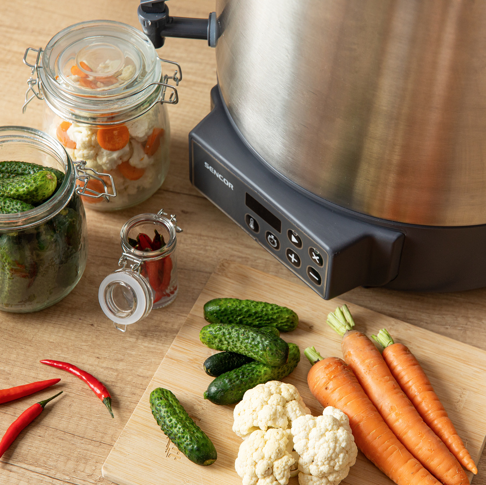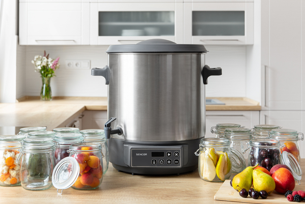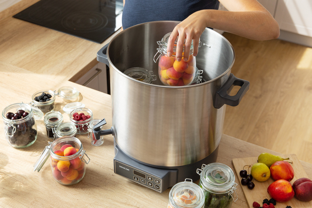 Model SPP 3200SS představuje digitální zavařovací hrnec s objemem 27 litrů, který zvládne zpracovat až 14 velkých zavařovacích sklenic najednou. Tato impozantní kapacita umožňuje efektivní zpracování sezónní úrody bez nutnosti častého přerušování práce. Největší výhodou domácího zavařování je absolutní kontrola nad množstvím použitých ingrediencí, bez přidaných konzervantů, barviv a chemických látek. Hrnec je vyroben z hygienické nerezové oceli, která zajišťuje nejen snadnou údržbu, ale především zachování autentické chuti a vůně zpracovávaných surovin.