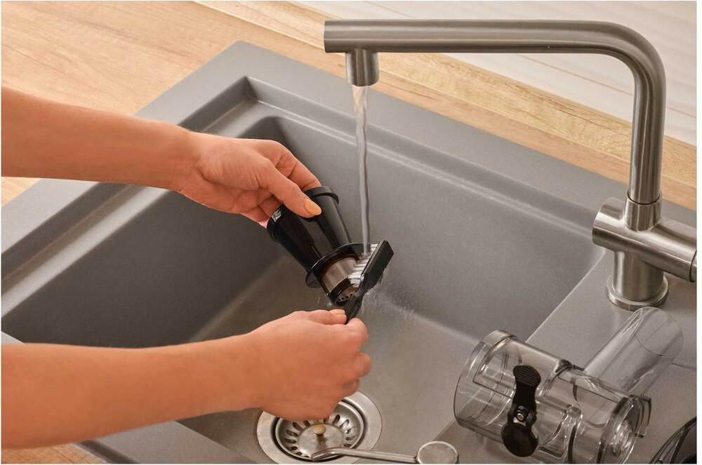 Pomocí regulátoru drti jednoduše nastavíte množství zbytkové dužiny podle typu suroviny – od měkkého ovoce po tvrdou zeleninu. Tím dosáhnete vždy ideální výtěžnosti. Přístroj zahrnuje anti-drip systém a nádoby o objemu 550 ml na šťávu i 700 ml na drť. Po použití rychle rozeberete plastové díly pro mytí v myčce, včetně praktického čisticího kartáčku.