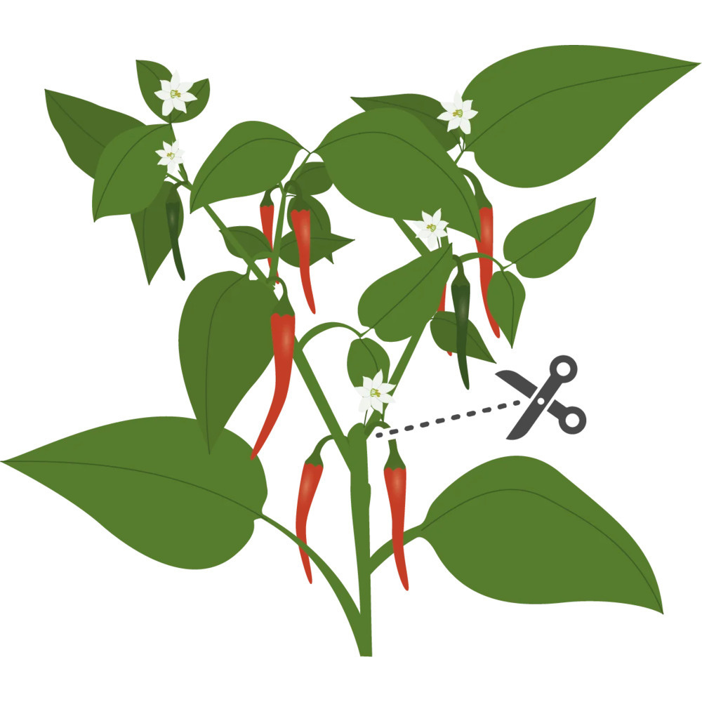 Je důležité pravidelně opylovat květiny po celou dobu kvetení, které trvá několik týdnů, aby se získalo maximum plodů. Ideálně opylujte květiny každé 2 dny, když svítí světla (aby byly květy otevřené). Pomocí měkkého kartáčku nebo ukazováčku jemně otřete vnitřek květu, aby se pyl přenesl na pestík. O několik dní později okvětní lístky uschnou a opadají a uvolní místo malému fialovému chilli, které postupně poroste a o měsíc později zčervená.